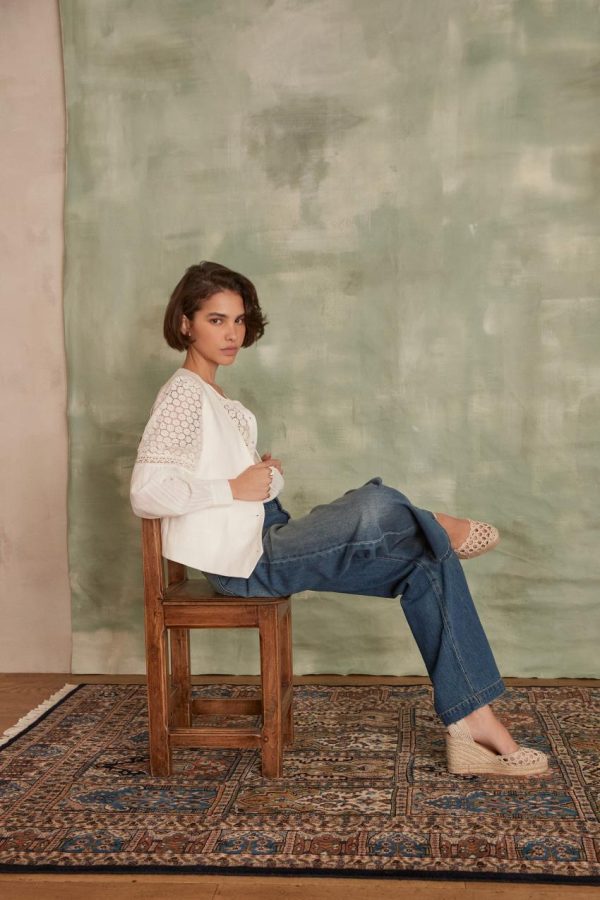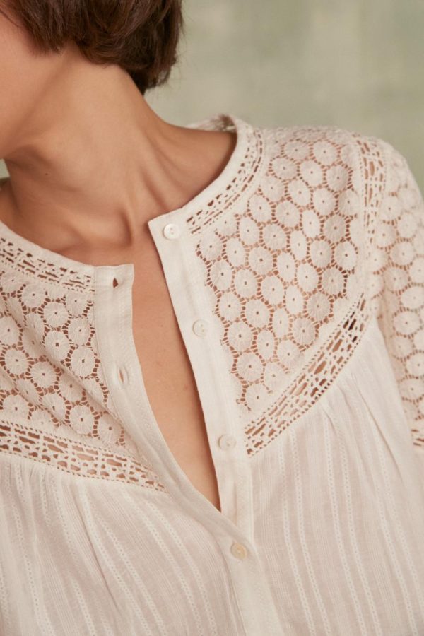 Découvrez la délicatesse raffinée de la blouse CAMELIA, une pièce ajourée d’une élégance intemporelle qui sublime la féminité avec grâce.
