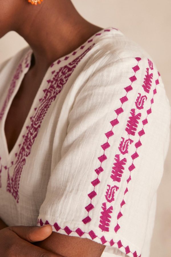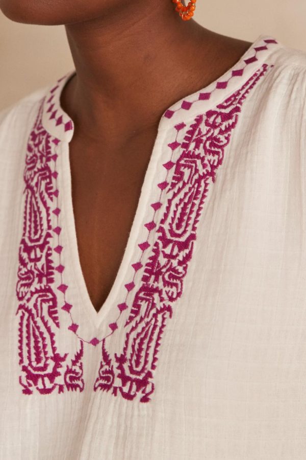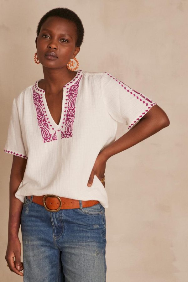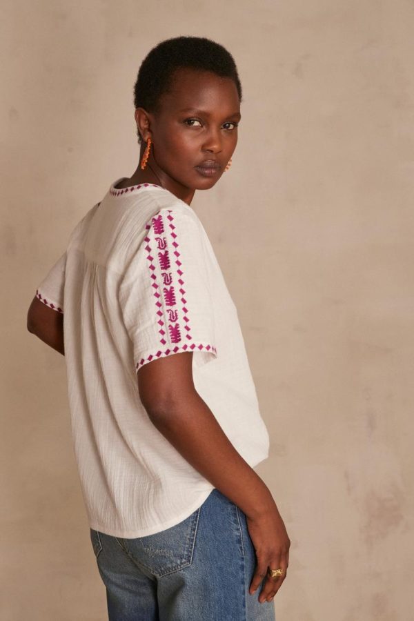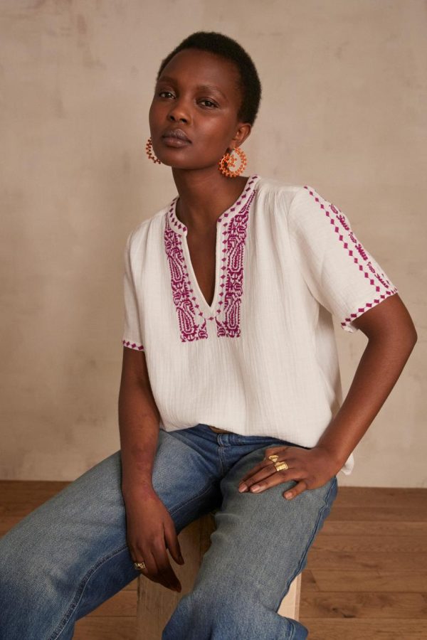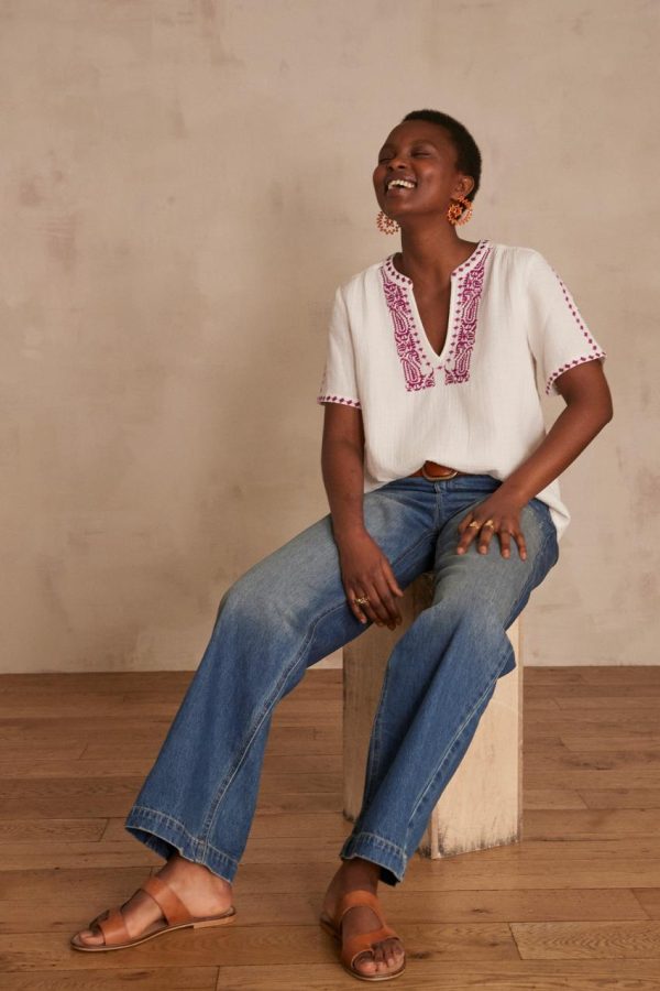 D’une élégance bohème absolue, nous succombons à notre nouvelle blouse CHAIMA en voile de coton, pièce intemporelle qui sublime la silhouette avec une grâce aérienne et raffinée.