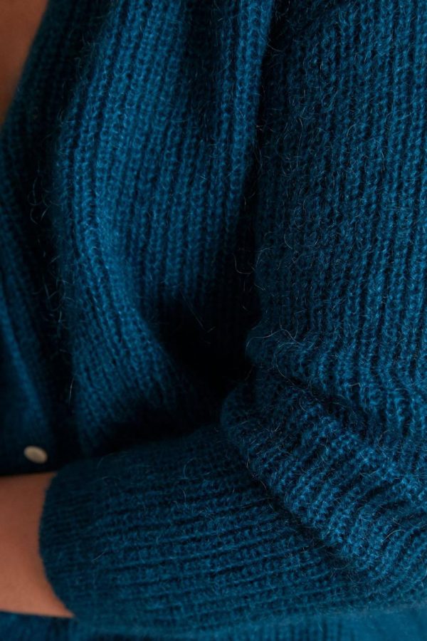WECARE : Ce cardigan est confectionné à partir de polyamide recyclé. Cela permet d’économiser les ressources non renouvelables nécessaires à la production d’une matière vierge, tout en diminuant les déchets. Moins gourmand en énergie et en eau, le polyamide recyclé est une alternative éco-responsable au polyamide vierge. Le procédé générique est de broyer et fondre la matière afin d’en créer un nouveau fil.