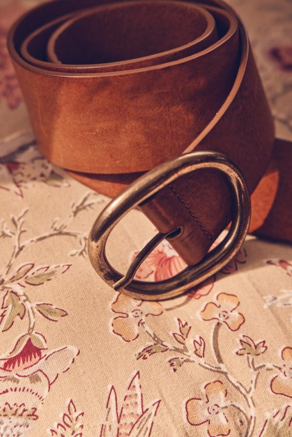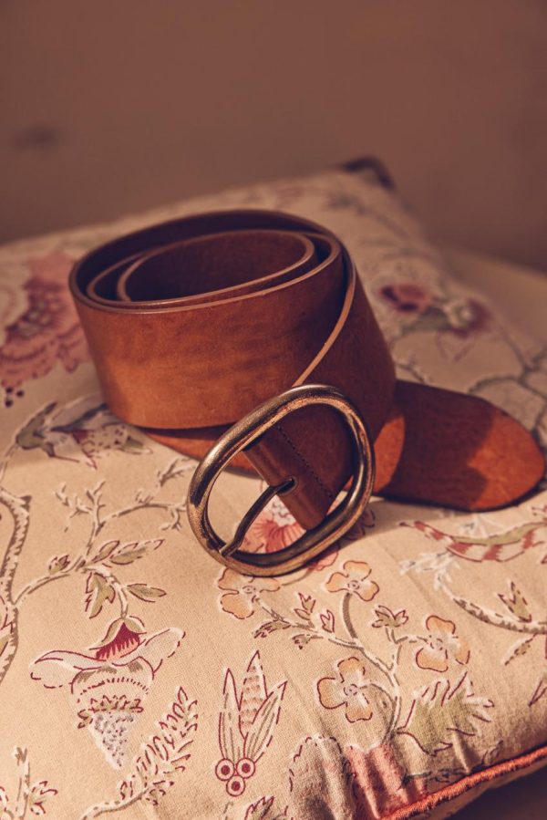 Confectionnée dans un cuir lisse au fini légèrement patiné et ornée d’une boucle ovale en métal doré, elle s’accorde avec une infinie délicatesse à toutes vos tenues. Cette ceinture incarne l’essence même du must-have parisien.