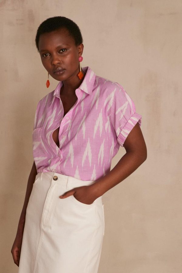Découvrez l’élégance raffinée de la chemise CAYA, une pièce délicatement ornée de motifs enchanteurs qui sublime la féminité avec grâce et sophistication.