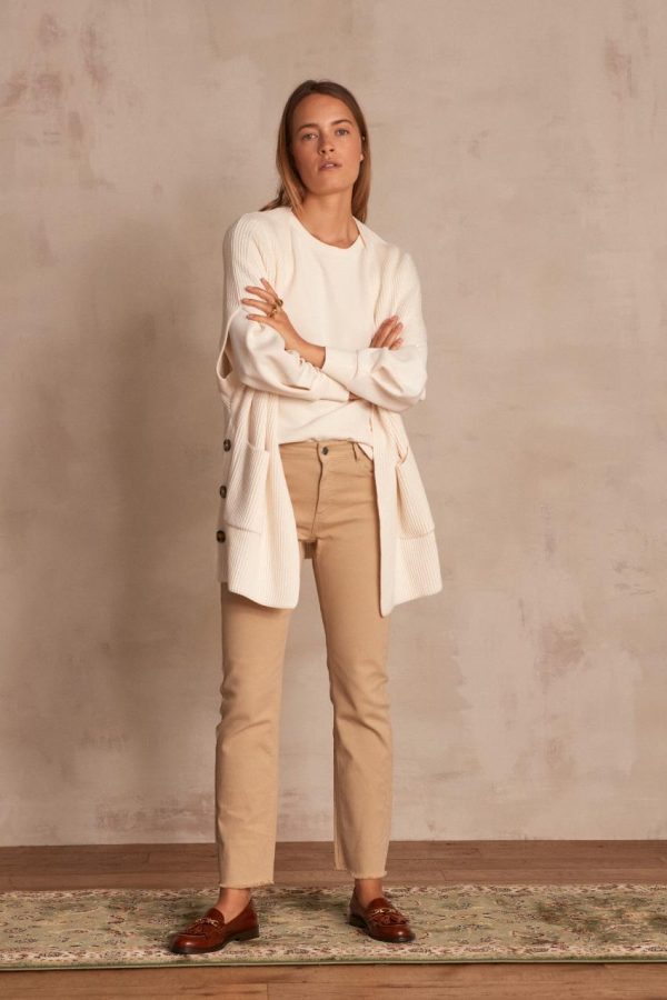 On le mixe à l’infini, c’est l’avantage de cet indispensable. On imagine aisément des looks dans un camaïeu de beiges et d’écrus, délicat et lumineux.