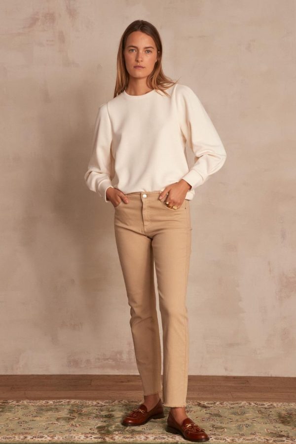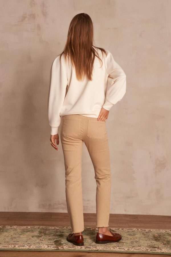 Confectionné en coton, on adore sa coupe droite légèrement crop et ses bords francs résolument modernes. A la taille haute, ce basique indémodable galbe joliment la silhouette. On adore cette version teinte et son doux coloris.