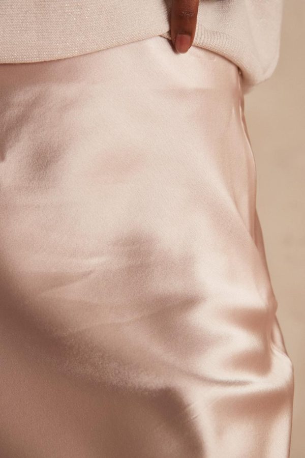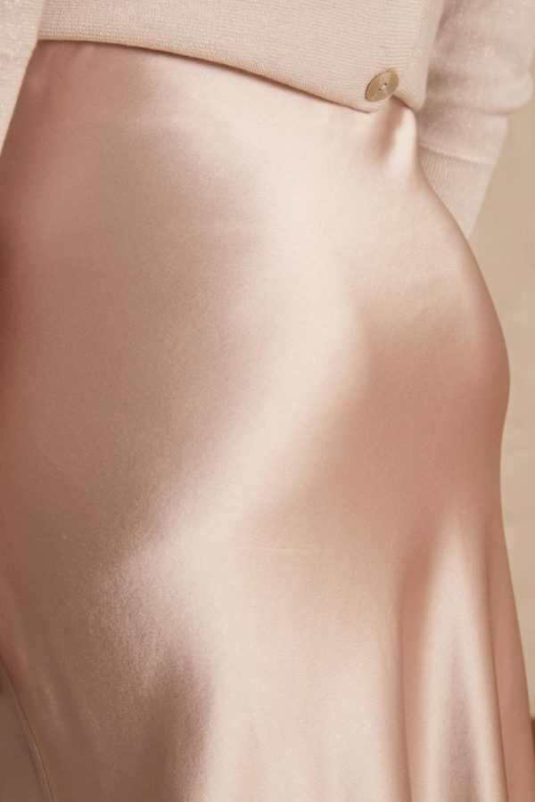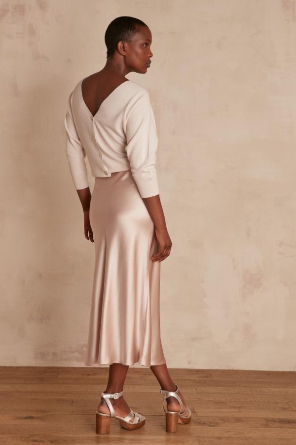 Cette jupe midi satinée fluide est d’une élégance et simplicité folle. A la coupe sirène, on craque pour son coloris clair indémodable et qui se marie avec tout.