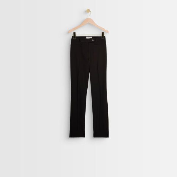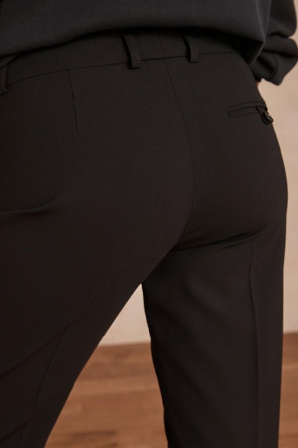 On adopte ce pantalon de tailleur noir pour une silhouette élégante et élancée. Le modèle arbore une coupe cigarette ajustée, des fentes aux chevilles et une matière délicate un brin stretch.