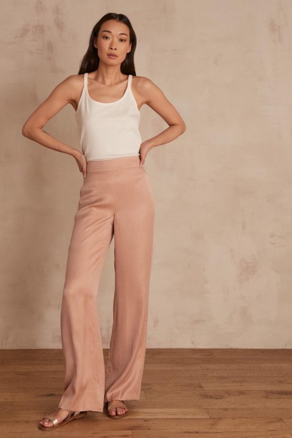 Craquez pour l’élégante simplicité du pantalon palazzo subtilement satiné LIVIA.