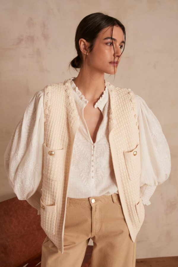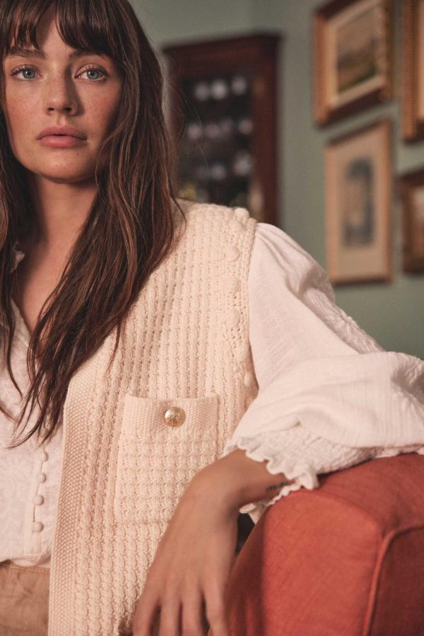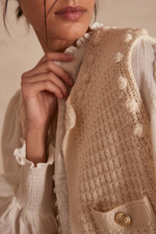 On craque pour le gilet sans manches LEA tricoté aux boutons dorés.