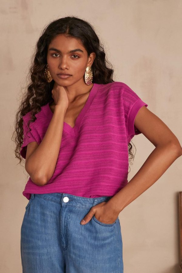 Découvrez LYS, notre pull à manches courtes si élégant.