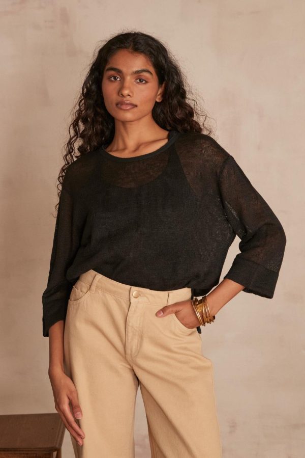 Femme Pulls Et Gilets | Maison 123 T-shirt En Maille Ajourée DIEGO Noir