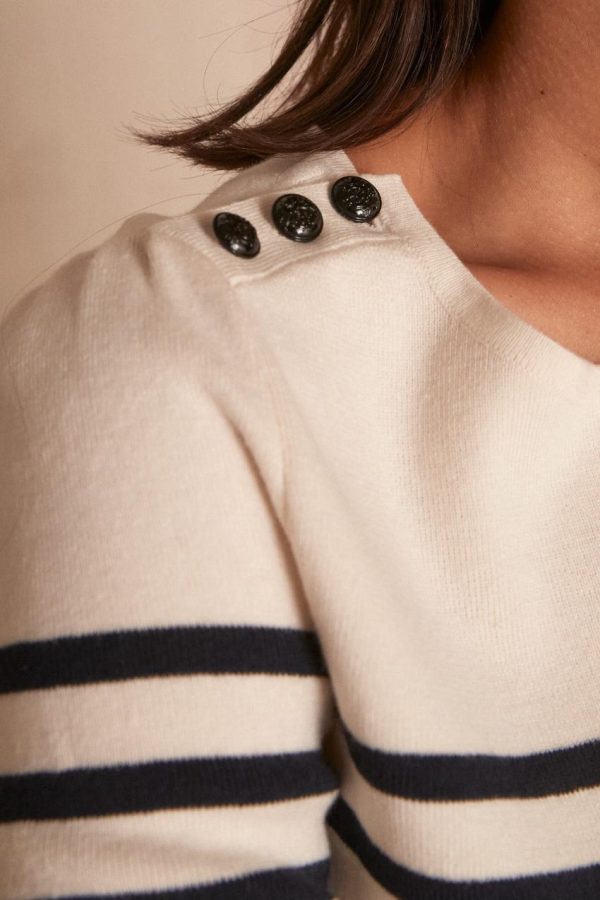 Ce pull à tout pour vous charmer : son esprit marnière, si tendance, son col rond et le détail de ses boutons aux épaules qui rend se pull élégant et indispensable à votre garde-robe. Doux et confortable, il est idéal à la mi-saison.