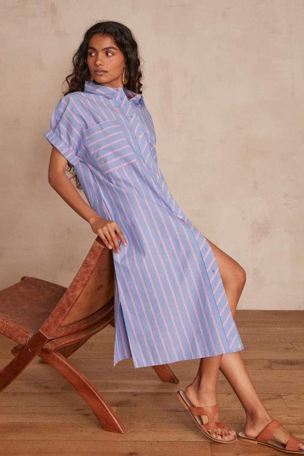 Femme Robes | Maison 123 Robe Chemise Rayée Gigi Ciel