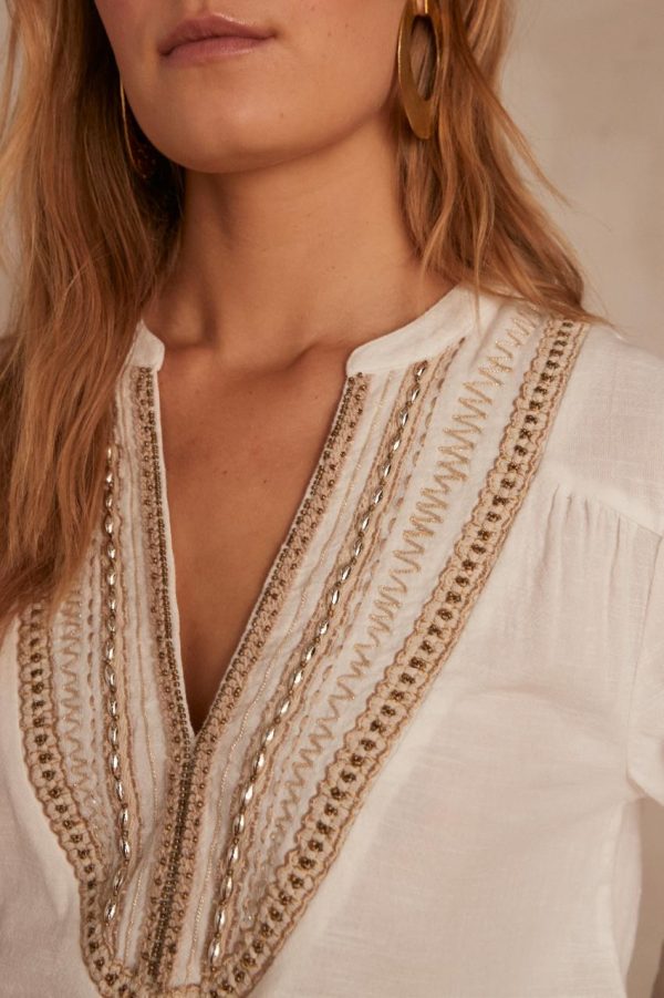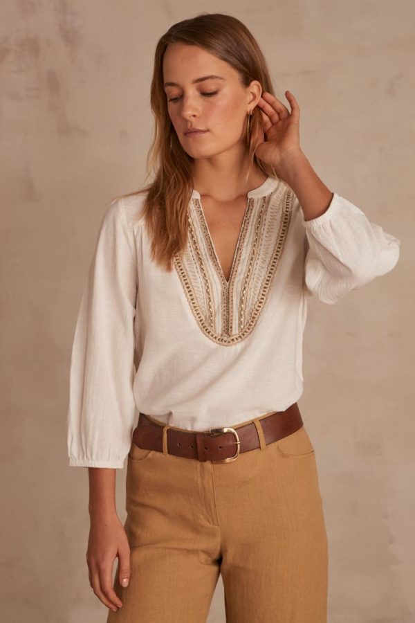 Femme T-shirts Et Chemisiers | Maison 123 Blouse Brodée Carmen Ecru