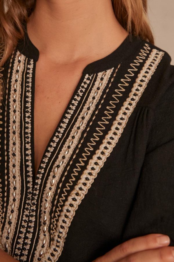 Femme T-shirts Et Chemisiers | Maison 123 Blouse Brodée Carmen Noir