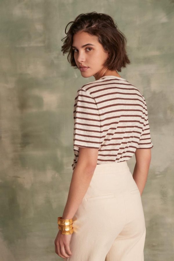 On craque pour notre nouvelle marinière revisitée DONATELLO aux rayures chocolat tellement désirable !