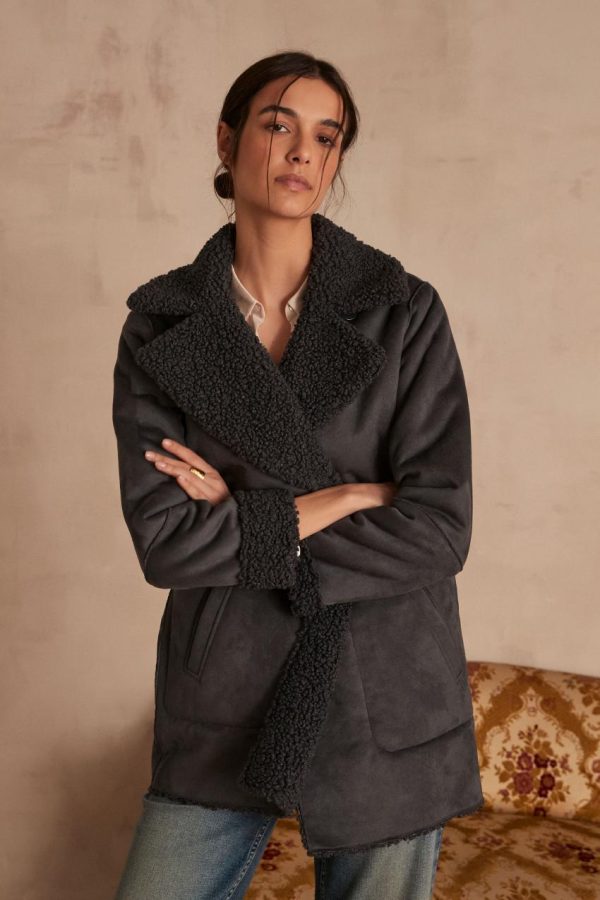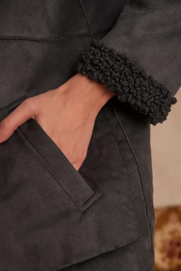 Femme Vestes Et Manteaux | Maison 123 Manteau Fourré Odelie Gris Fonce