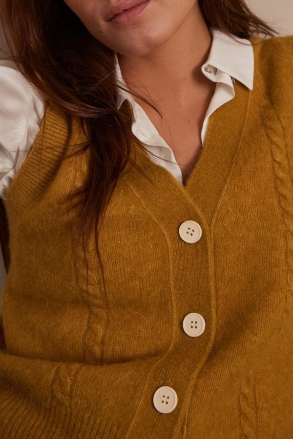 Découvrez notre maille LORIE, une pièce d’exception qui sublime votre silhouette avec élégance. Ce gilet sans manches incarne le savoir-faire français à travers sa coupe raffinée et sa texture délicate.