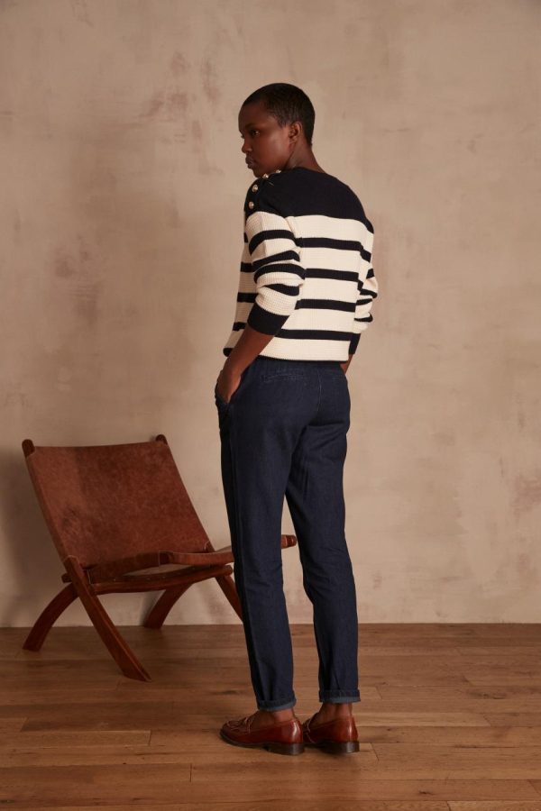 Découvrez notre pantalon SABIL dans une nuance bleu profond raffinée, taillé dans un coton d’une douceur enveloppante pour une élégance quotidienne.